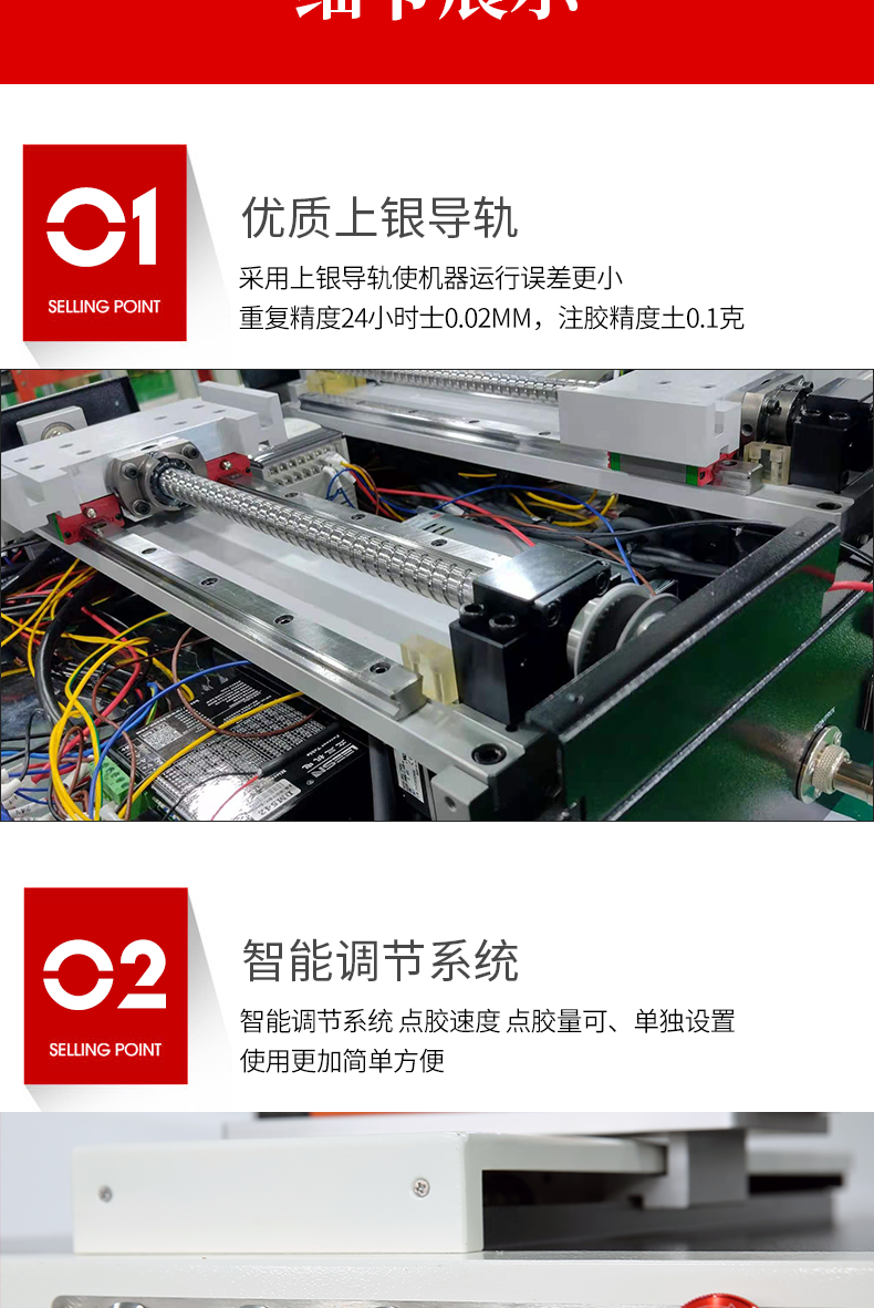 1.取代人工特點的點膠作業,實現機械化生產 。